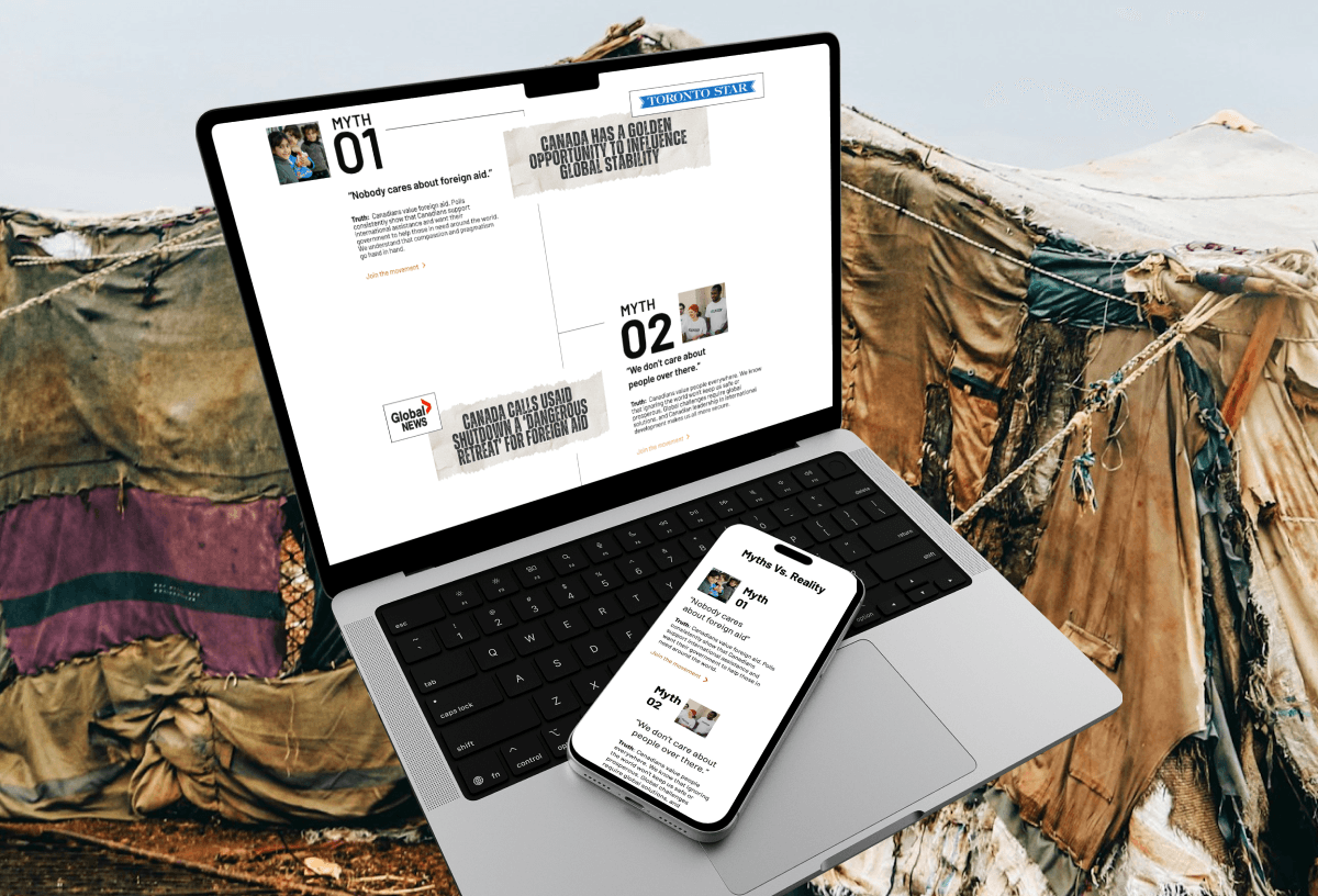 Aid Works is a multi-channel campaign designed to rally Canadians around foreign aid. I helped define the campaign identity and created branding, social content, and landing pages to deliver a consistent message across channels.